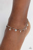 Strung along the entirety of an invisible wire, blue seed beads coalesce around the ankle. The row of blue seed beads are haphazardly interrupted by blooming white seed bead flowers, with pink centers for a carefree, charismatic finish.