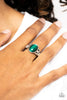 Glittery white rhinestones dance between two shiny Quetzal Green bands, coalescing into a refined centerpiece. Features a stretchy band for a flexible fit.