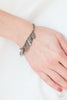 Hammered in shimmery details, asymmetrical shiny gunmetal frames delicately overlap along stretchy bands around the wrist for an artisan inspired look.