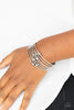 Hammered in antiqued details, a rustic collection of silver beads are threaded along a stretchy band around the wrist for a wildly adventurous look.