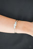 Green leather strands layer across the wrist. Infused with silver chain and white rhinestone accents, green cording knots around a leather strand, securing a solitaire white rhinestone in place for a whimsical finish. Features an adjustable clasp closure.