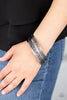 Dipped in a rainbow iridescence, a collection of metallic crystal-like beads and shiny silver beads are threaded along two stretchy bands around the wrist for a refined look.
