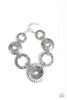 Two oversized silver frames gently curl around the wrist, delicately linking into an impressive cuff-like bangle. Features a hinged closure.