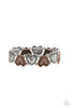 Featuring life-like textures, pairs of brass and silver feather charms are threaded along stretchy bands as they overlap around the wrist for a whimsical look.