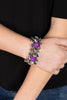 Rows of classic silver chain, flat silver chain, and dainty white rhinestones are encrusted along a gray suede band for a sassy look. The elongated band allows for a trendy double wrap design. Features an adjustable snap closure.