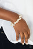 Featuring glistening silver accents, refreshing disc-shaped and round white stone beads are threaded along a stretchy band for a seasonal look.