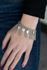 Bordered in glassy white rhinestones, a white heart shaped gem sparkles from a toggle closure at the center of an oval silver linked chain for a flirtatious fashion around the wrist. Features a toggle closure.
