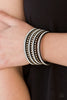 A black strip of suede is spliced into glittery bands braided across the wrist in a sassy fashion. Classic round and emerald-cut hematite beading create the ultimate collision of sparkle. Features an adjustable snap closure. Sold as one individual bracelet.
