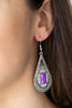 Refreshing turquoise and white stone dotted frames swing from the bottom of a filigree filled chandelier dotted with a matching turquoise stone, creating an earthy fringe. Earring attaches to a standard fishhook fitting.