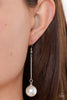 Dainty white seed beads adorn the front of a scalloped heart shaped frame that swings from the bottom of a studded silver frame adorned in a marquise cut white bead. Dainty white beads dot studded silver frames that trickle from the bottom of the refreshing display, creating a playful fringe. Earring attaches to a standard fishhook fitting.