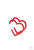 Glassy red gems dangle from the top and bottom of a textured silver marquise frame, creating a glamorous fringe. Earring attaches to a standard fishhook fitting.