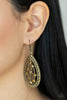 Brushed in an antiqued finish, a gritty brass hoop is hammered in grungy details for an edgy industrial flair. Earring attaches to a standard post fitting. Hoop measures approximately 2" in diameter.