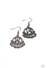 Gradually increasing in size, a stunning trio of hammered gunmetal hoops link into an oversized lure for a classic metallic look. Earring attaches to a standard fishhook fitting.