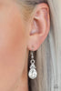 An asymmetrical silver star swings from thick silver chain links and a unique hardware fitting, resulting in an iconic lure. A thick carabiner accent of silver rests along the star's frame for additional monochromatic detail. Earring attaches to a standard fishhook fitting.