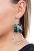A sprinkling of glittery blue rhinestones floats across a trio of wavy silver circles that graduate in size as they interlock into a glamorously luminous lure. Earring attaches to a standard fishhook fitting.
