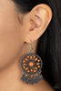 Strands of black seed beads gently curve into the arch of a rainbow, resulting in a tasseled bohemian fashion. Earring attaches to a standard post fitting.