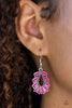 As if dipped in paint, the bottom of an asymmetrical silver hoop has been glazed in a shiny pink finish for a colorful finish. Earring attaches to a standard post fitting. Hoop measures 1 3/4" in diameter.