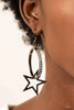 Featuring shimmery diamond-cut texture, a glistening gunmetal bar lines the center of a beveled gunmetal hoop, creating an edgy stacked look. Earring attaches to a standard post fitting. Hoop measures approximately 2 1/2" in diameter.