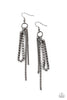 A flat gunmetal star glides along a gunmetal hoop, resulting in a stellar fashion. The front of the gunmetal hoop is encrusted in glassy white rhinestones for a glitzy finish. Earring attaches to a standard fishhook fitting.