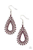 A flirty purple bead swings from the top of a shimmery silver hoop featuring floral detail for a seasonal look. Earring attaches to a standard fishhook fitting.