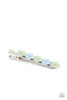 Dotted with dainty white rhinestone centers, a trio of French Blue flowers adorn the front of a classic silver bobby pin for a summery look.