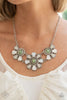 Dainty green rhinestones are sprinkled across the top of a silver tree beautifully branching inside an oval silver frame, resulting in a seasonal pendant at the bottom of an extended silver chain. Features an adjustable clasp closure.