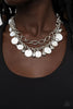 A solitaire white pearl swings from the uppermost chain, giving way to a teardrop pendant and shimmery silver chain tassel. Dainty white rhinestones and white pearls collect at the bottom of the centermost pendant for a glamorous finish. Features an adjustable clasp closure.