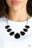 Featuring elegant marquise style cuts, glittery black rhinestones join with silver accents below the collar, creating a dainty pendant. Features an adjustable clasp closure. Sold as one individual necklace. Includes one pair of matching earrings.