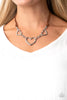 Hammered in a shiny matte finish, flat silver oval frames swing from the bottom of a bold silver chain below the collar. Golden topaz rhinestones adorn the oval frames, adding a flawless hint of sparkle to the flattering fringe. Features an adjustable clasp closure.