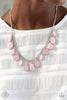 Delicately encased in shiny silver fittings, bubbly clusters of pink beads and glittery pink rhinestones elegantly link below the collar, resulting in an enchanting centerpiece. Features an adjustable clasp closure.