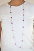 Featuring a faceted surface, a dewy purple acrylic gem swings from the bottom of a lengthened silver chain. A shimmery silver chain tassel attaches to the bottom of the colorful pendant, adding flirtatious movement. Features an adjustable clasp closure.