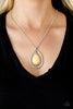 Infused with a lengthened silver chain, a polished yellow bead is pressed into the center of a flared silver pendant for a bold tribal flair. Features an adjustable clasp closure.