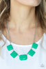 Encased in a shiny silver fitting, a glittery UV green teardrop gem glides along a dainty silver chain below the collar for a stellar fashion. Features an adjustable clasp closure.