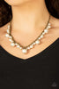 Featuring an icy iridescence, glassy asymmetrical beads join a mismatched collection of shiny copper beads, white rhinestone encrusted rings, and scalloped shiny copper accents below the collar. Attached to a shiny copper chain, the glacial display catches and reflects light for a statement-making finish. Features an adjustable clasp closure.