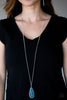 A faceted ceramic black bead is knotted in place along a braided twine-like cord below the collar, creating an authentically earthy centerpiece. Features a button loop closure.