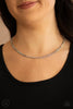 Varying in shape and opacity, a faceted collection of glassy and acrylic Ultimate Gray beads joins pearls, dainty silver beads, and zigzagged silver discs along an invisible wire across the chest for an effervescent elegance. Features an adjustable clasp closure.