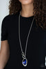 Gradually increasing in size, luminescent blue pearls trickle below the collar for a classic look. Encrusted in dazzling white rhinestones, glittery rings are sprinkled between the pearls for a timeless finish. Features an adjustable clasp closure.