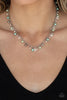 Featuring a matte finish, bubbly Pale Rosette, Olive Branch, and Ultimate Gray beads join hammered and linear textured silver beads along a substantial silver chain, creating a boisterous cluster below the collar. Features an adjustable clasp closure.