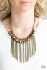 A double row of delicately hammered and dotted brass discs gently lay across the collar. Gradually increasing in size, they connect to brass chains for a simple statement. Features an adjustable clasp closure.