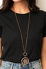 Dainty copper hoops and rustic rings delicately link into a chic chain, creating simplistic shimmer below the collar. Features an adjustable clasp closure.