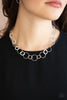 Dramatic hematite gems encased in daintily dotted frames link with silver rings finished with flattened studded texture. The stunning rhinestones and edgy rings alternate around the neck, resulting in an upscale industrial flair. Features an adjustable clasp closure.