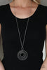 A rustic silver chain tassel dances from the bottom of an oversized silver rosebud frame, resulting in a vintage inspired pendant at the bottom of an extended silver chain. Features an adjustable clasp closure.
