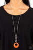 A silver disc swings from the top of an airy silver hoop, creating a shimmery pendant at the bottom of lengthened Illuminating cords for a colorful fashion. Features an adjustable clasp closure.