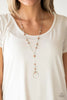 Varying in cut and shimmer, a mismatched collection of white, golden topaz, and classic topaz rhinestones haphazardly coalesce inside an oval silver frame, creating a mesmerizing pendant at the bottom of an extended silver chain. Features an adjustable clasp closure.