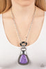 Flecked in shimmer, a faux marble purple acrylic piece is pressed into a shimmery silver frame, creating a retro pendant at the bottom of a lengthened silver chain. Features an adjustable clasp closure.