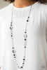 A strand of shiny black beads drapes elegantly below the collar. Featuring regal marquise style cuts, glittery white rhinestone frames swing from the beaded strand for a timeless finish. Features an adjustable clasp closure.