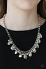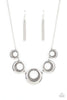 A trio of smoky rhinestones are encrusted along a bowing silver bar, creating a stellar pendant below the collar. Features an adjustable clasp closure.