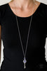 An oil spill raw-cut gem dazzles at the bottom of a dainty gunmetal chain, creating an out-of-this-world sparkle below the collar. Features an adjustable clasp closure.