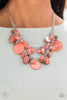 A vivacious orange stone is pressed into the center of a large silver teardrop radiating with shimmery sunburst patterns. The tribal inspired pendant swings from the bottom of a lengthened silver chain for a dramatic look. Features an adjustable clasp closure.