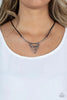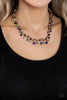 A collection of round and faceted black beads swings from the bottom of a bulky silver chain below the collar, creating a vivacious fringe. Features an adjustable clasp closure. Sold as one individual necklace. Includes one pair of matching earrings.